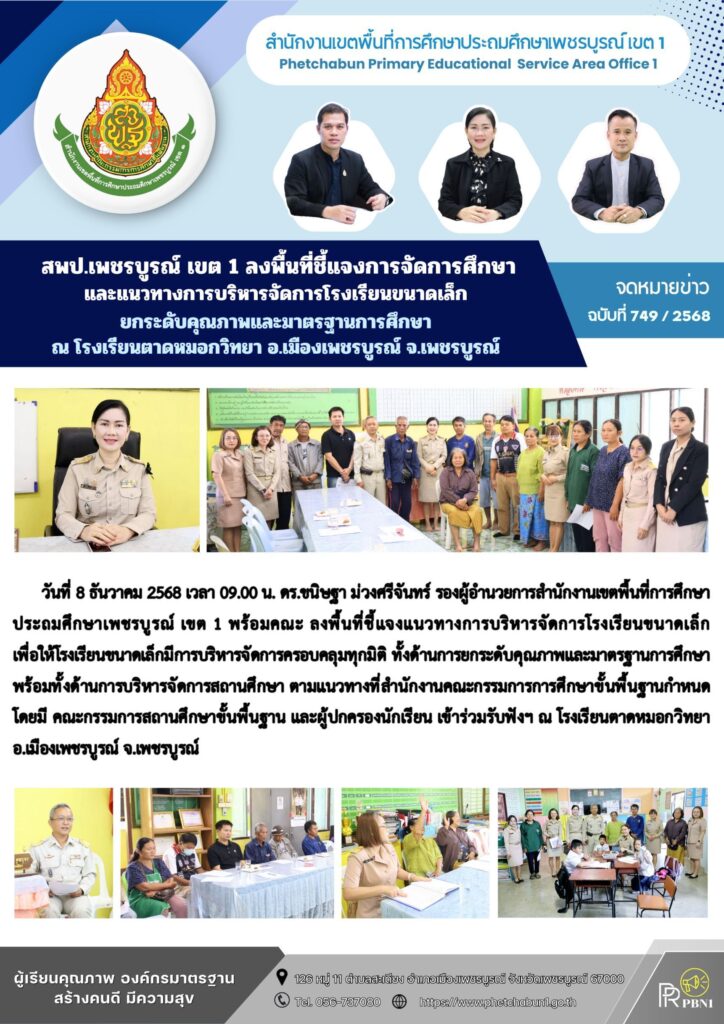 สพป.เพชรบูรณ์ เขต 1 ลงพื้นที่ชี้แจงการจัดการศึกษาและแนวทางการบริหารจัดการโรงเรียนขนาดเล็ก ยกระดับคุณภาพและมาตรฐานการศึกษา ณ โรงเรียนตาดหมอกวิทยา อ.เมืองเพชรบูรณ์ จ.เพชรบูรณ์By pinsherfa_dlct / December 8, 2025 Post Views: 2