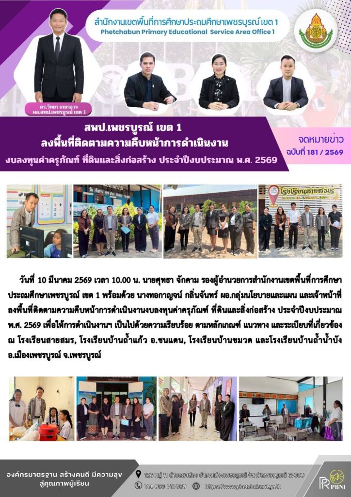 สพป.เพชรบูรณ์ เขต 1 ลงพื้นที่ติดตามความคืบหน้าการดำเนินงาน งบลงทุนค่าครุภัณฑ์ ที่ดินและสิ่งก่อสร้าง ประจำปีงบประมาณ พ.ศ. 2569By pinsherfa_dlct / March 10, 2026 Post Views: 3