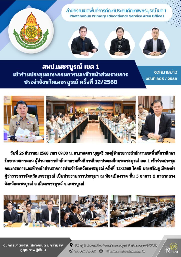 สพป.เพชรบูรณ์ เขต 1 เข้าร่วมประชุมคณะกรรมการและหัวหน้าส่วนราชการ ประจำจังหวัดเพชรบูรณ์ ครั้งที่ 12/2568