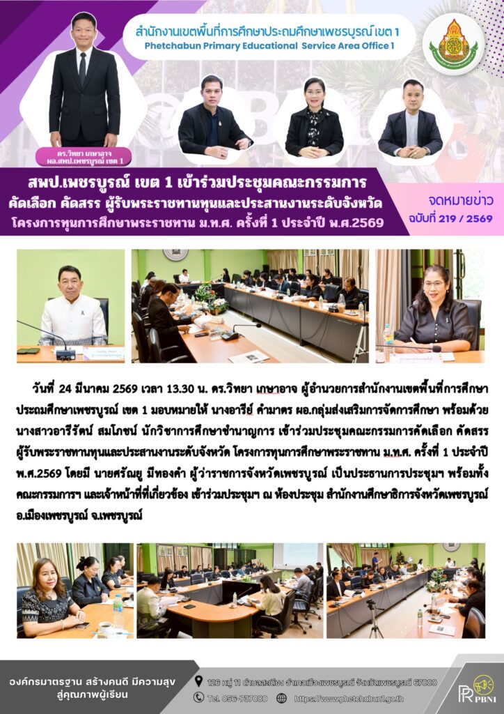 สพป.เพชรบูรณ์ เขต 1 เข้าร่วมประชุมคณะกรรมการคัดเลือก คัดสรร ผู้รับพระราชทานทุนและประสานงานระดับจังหวัด โครงการทุนการศึกษาพระราชทาน ม.ท.ศ. ครั้งที่ 1 ประจำปี พ.ศ. 2569By pinsherfa_dlct / March 24, 2026 Post Views: 2
