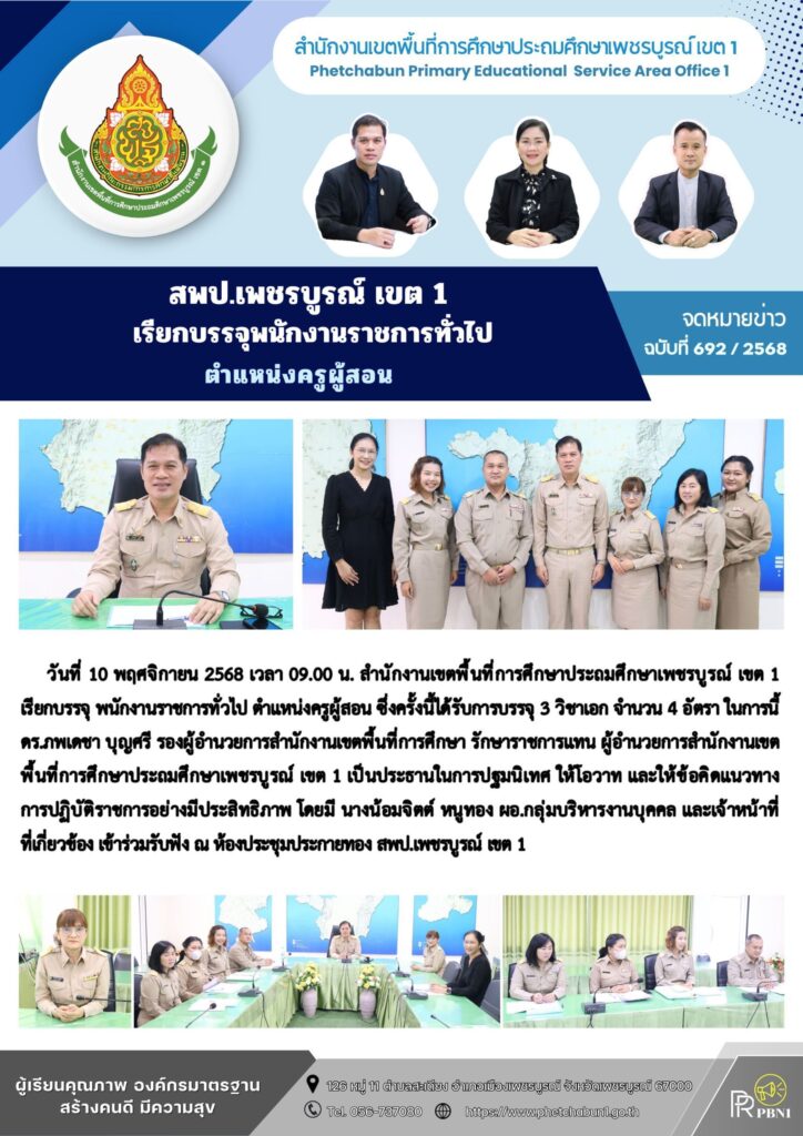 สพป.เพชรบูรณ์ เขต 1 เรียกบรรจุพนักงานราชการทั่วไป ตำแหน่งครูผู้สอนBy pinsherfa_dlct / November 10, 2025 Post Views: 2