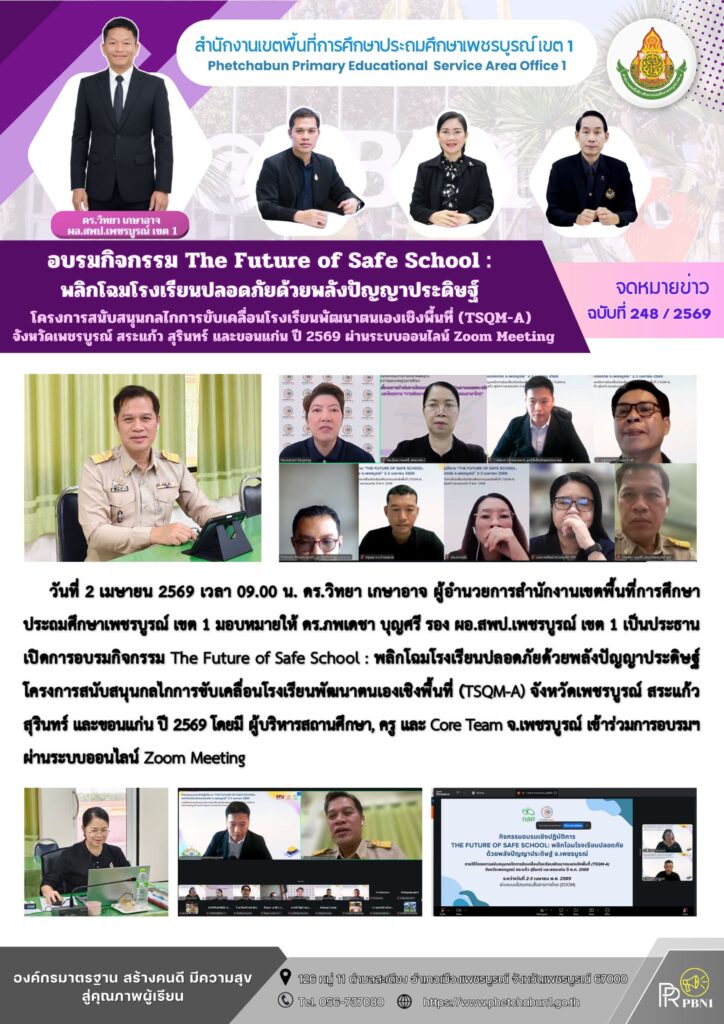 อบรมกิจกรรม The Future Of Safe School พลิกโฉมโรงเรียนปลอดภัยด้วยพลังปัญญาประดิษฐ์ โครงการ TSQM-A จังหวัดเพชรบูรณ์ สระแก้ว สุรินทร์ และขอนแก่น ปี 2569By pinsherfa_dlct / April 2, 2026 Post Views: 1
